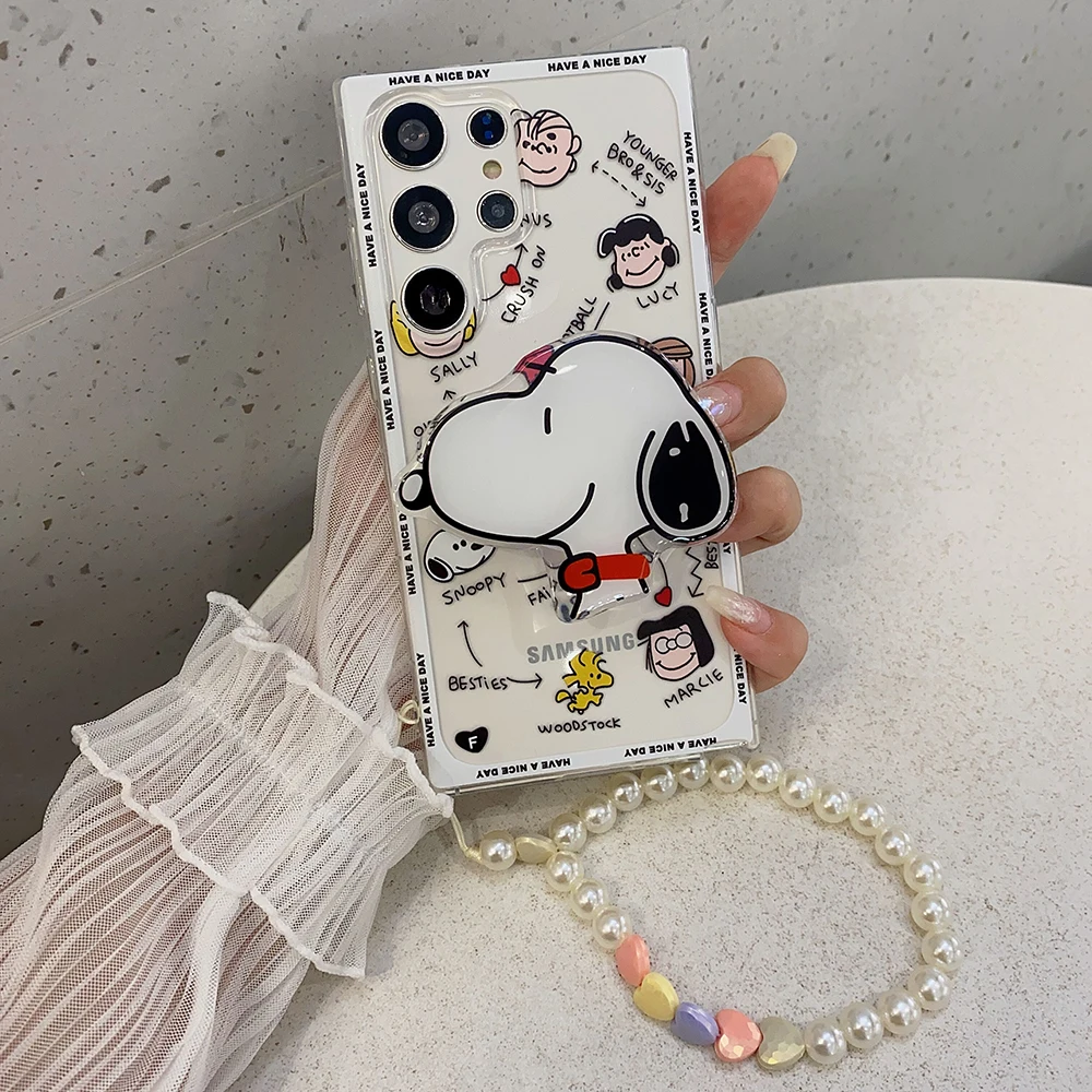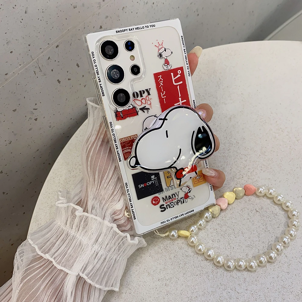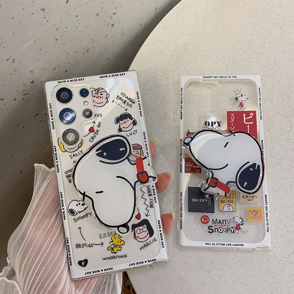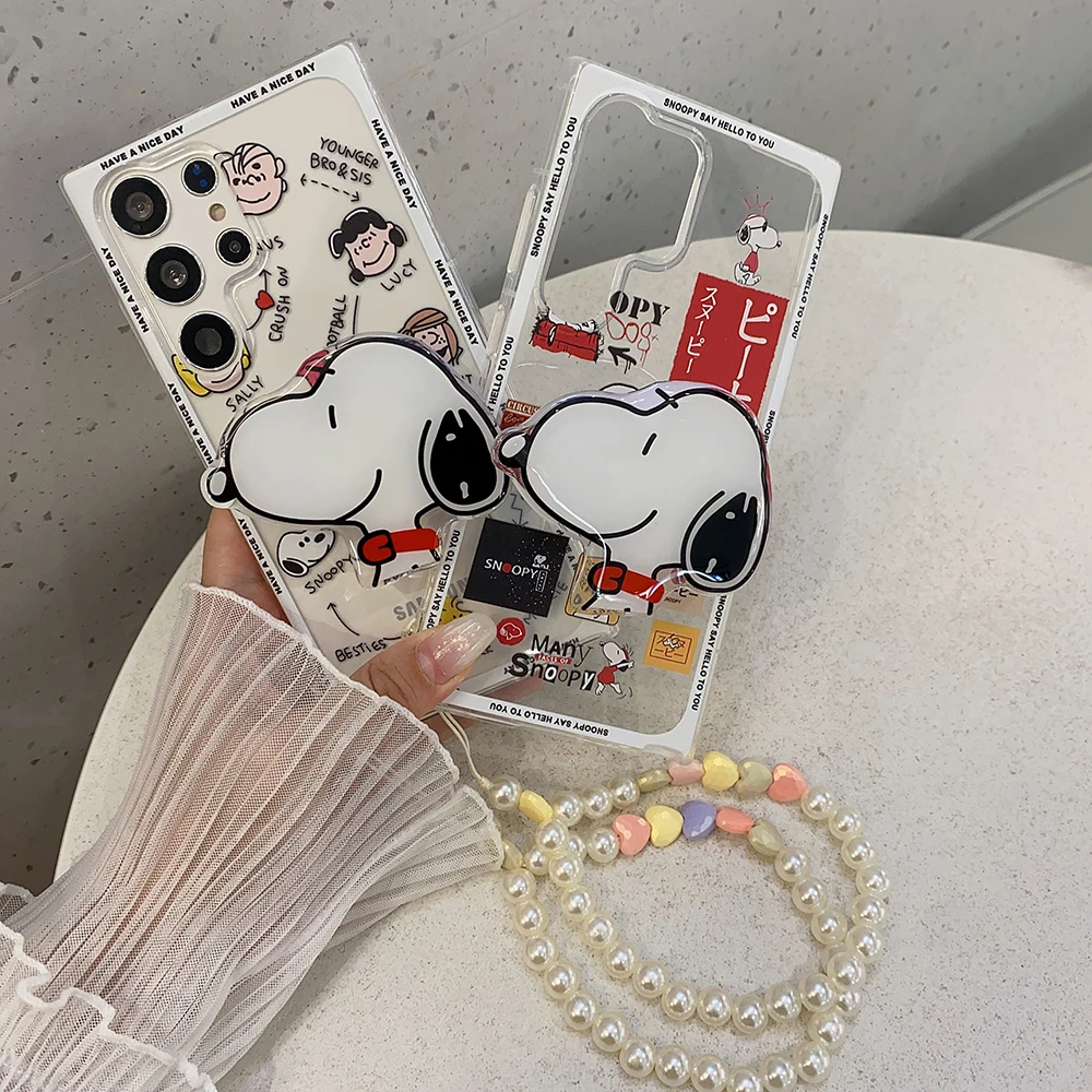 Cartoon Snoopies with Bracket Lanyard Phone Case for Samsung Galaxy